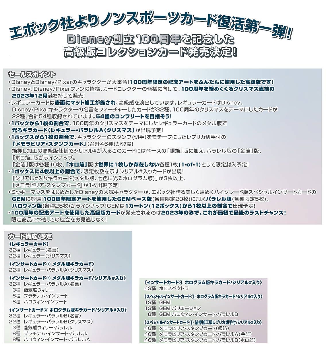 DISNEY創立100周年 EPOCH 2023 PREMIER EDITION