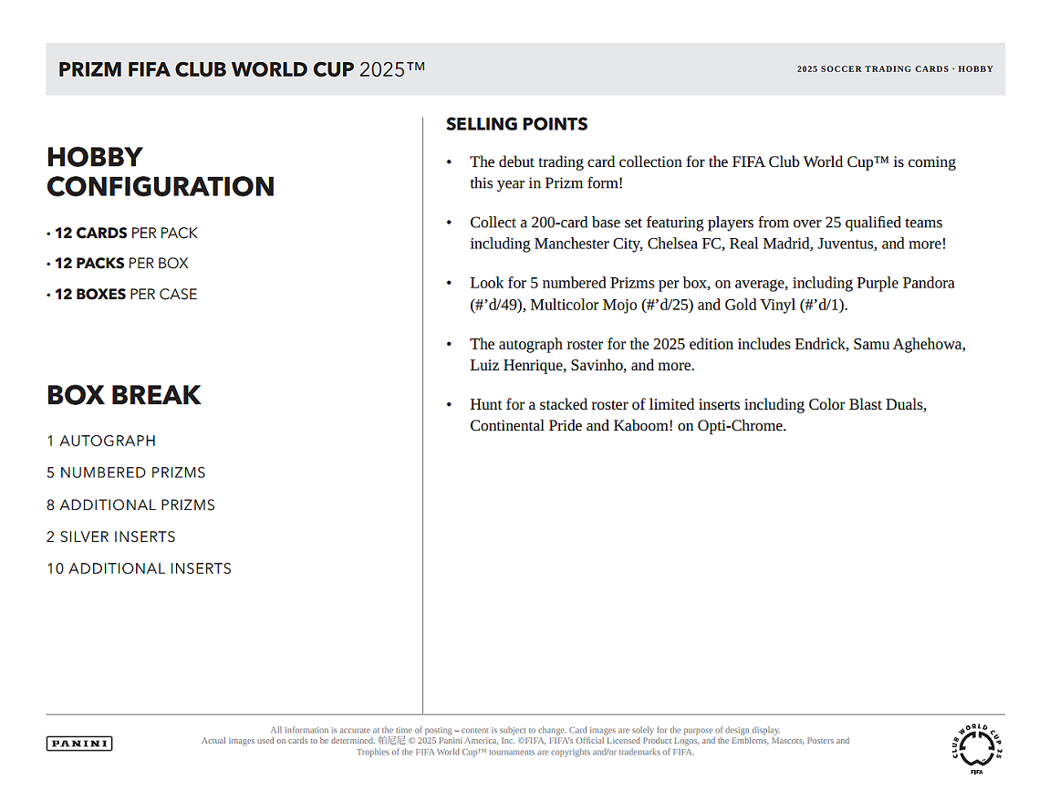 2025 Panini Prizm FIFA Club World Cup Soccer
